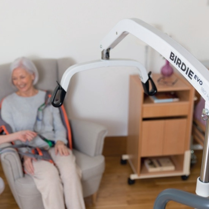 Le Birdie Evo Compact convient aux personnes à mobilité réduite, personnes âgées ou en convalescence, nécessitant une aide sécurisée pour les transferts. C’est un équipement essentiel pour le maintien à domicile et le confort des aidants.
